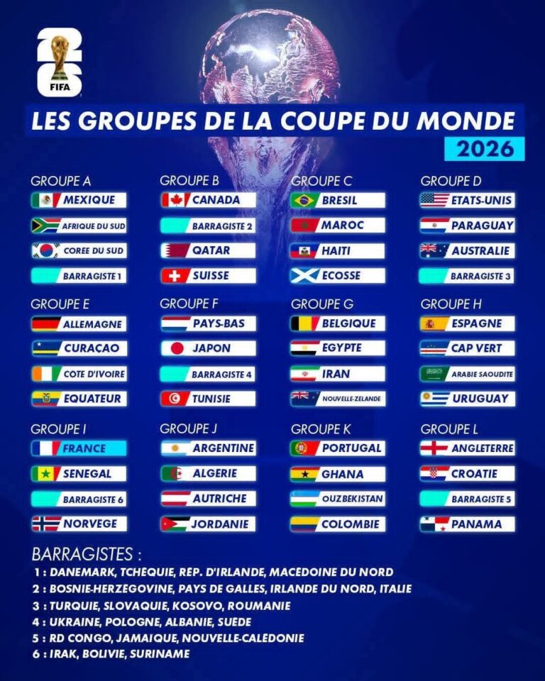 Ce vendredi 5 décembre 2025, à Washington, s’est tenu le tirage au sort de la phase de groupes de FIFA World Cup 2026, première édition à 48 équipes. L’occasion de découvrir non seulement les groupes, mais surtout d’évaluer les chances de nos nations africaines dans ce Mondial historique.