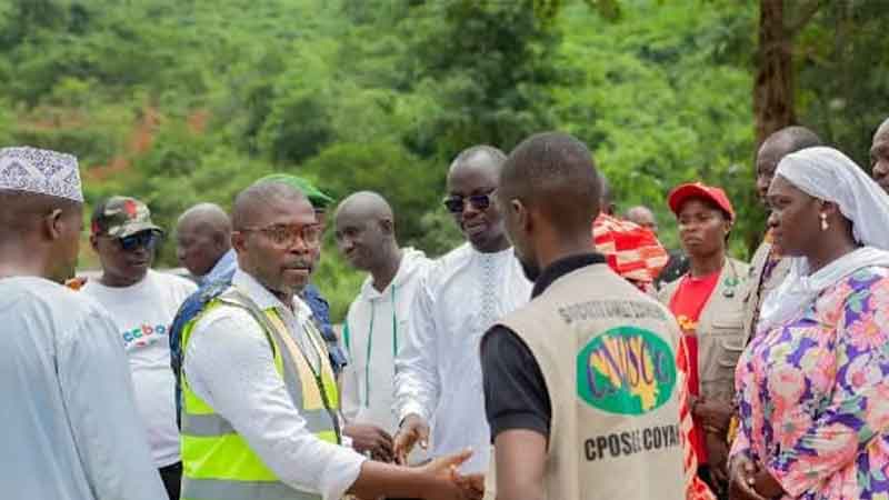 Les fortes pluies qui se sont abattues dans la nuit du lundi à mardi 22 juillet 2025 sur plusieurs localités de la Guinée ont particulièrement touché la commune urbaine de Coyah, provoquant d’importants dégâts matériels et humains. Face à cette situation dramatique, le président du Conseil National des Organisations de la Société Civile Guinéenne (CNOSCG), Gabriel Haba, à la tête d’une importante délégation, s’est rendu sur place pour constater les dégâts et apporter son soutien.