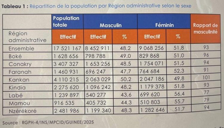 Le gouvernement guinéen a officiellement rendu publics, ce mercredi, 25 février 2026, les résultats préliminaires du Recensement Général de la Population et de l’Habitation (RGPH). Selon ces chiffres officiels, la Guinée compte désormais une population totale de 17 521 167 habitants.