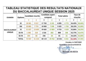 Les résultats du baccalauréat session 2025 en République de Guinée ont été officiellement publiés ce samedi 19 juillet 2025.