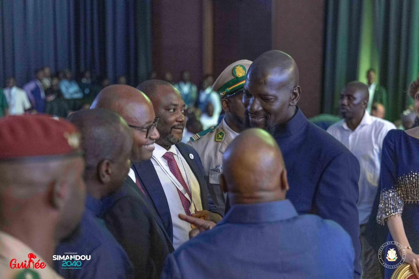 À son arrivée dans la salle de réception, le Président Mamadi DOUMBOUYA, accompagné de son épouse et des membres de sa famille, a tenu à saluer personnellement chacun des convives. Une attention particulière, marquée par des poignées de main et des échanges empreints de respect, illustrant un leadership fondé sur la proximité, l’humilité et la considération, au-delà des rangs et des titres.