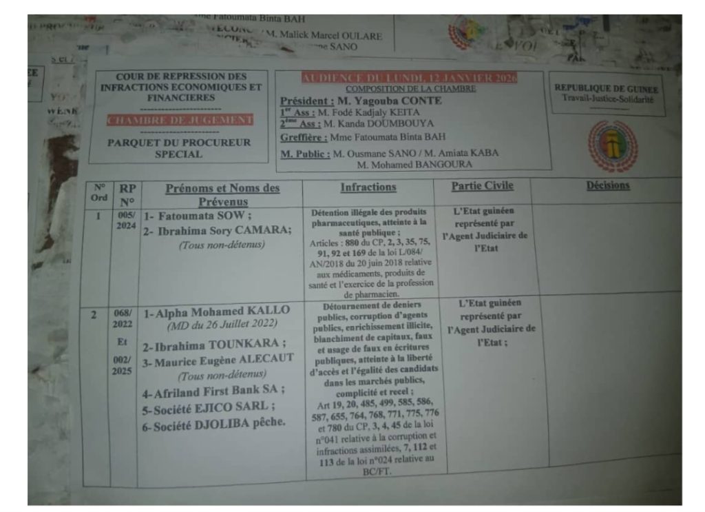 Ci-dessous, le tableau complet des affaires du 12 janvier sera rendu public, offrant un aperçu des dossiers phares examinés par la CRIEF.