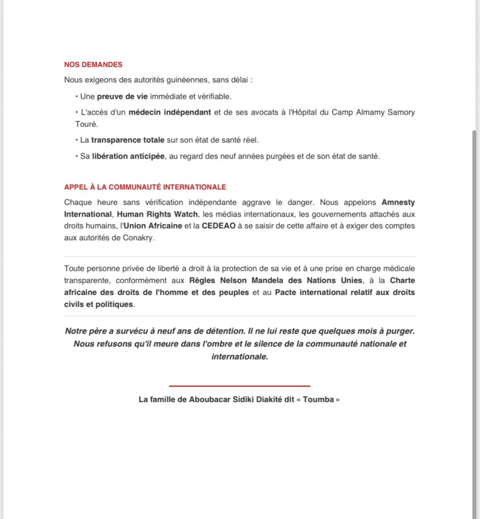 La famille exige aux autorités guinéennes, une preuve de vie immédiate et sans délai.