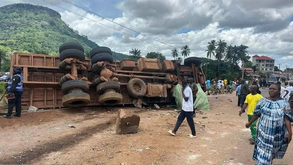 Selon les premières informations recueillies sur place par la rédaction d’avenirguinee.org, un camion immatriculé AB 9287 s’est renversé, causant la mort d’une personne et des dégâts matériels.