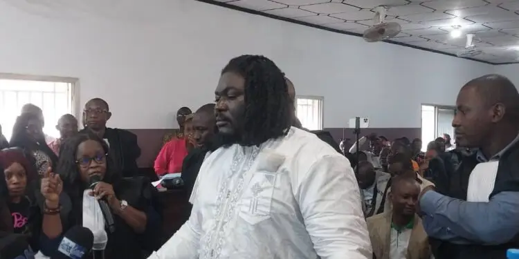 L’artiste Mohamed Seydouba Bangoura, alias Singleton, devant le tribunal lors de la deuxième journée de son procès.
